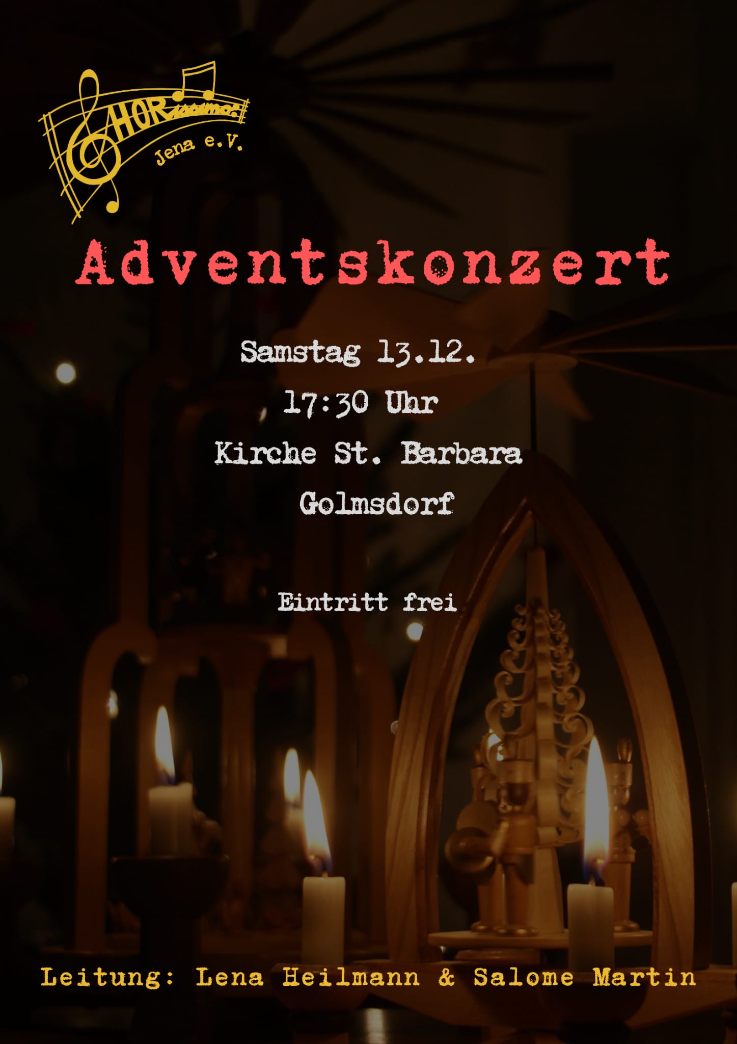 Wir laden herzlich ein am 13. Dezember um 17:30 Uhr in die Kirche St. Barbara in Golmsdorf.